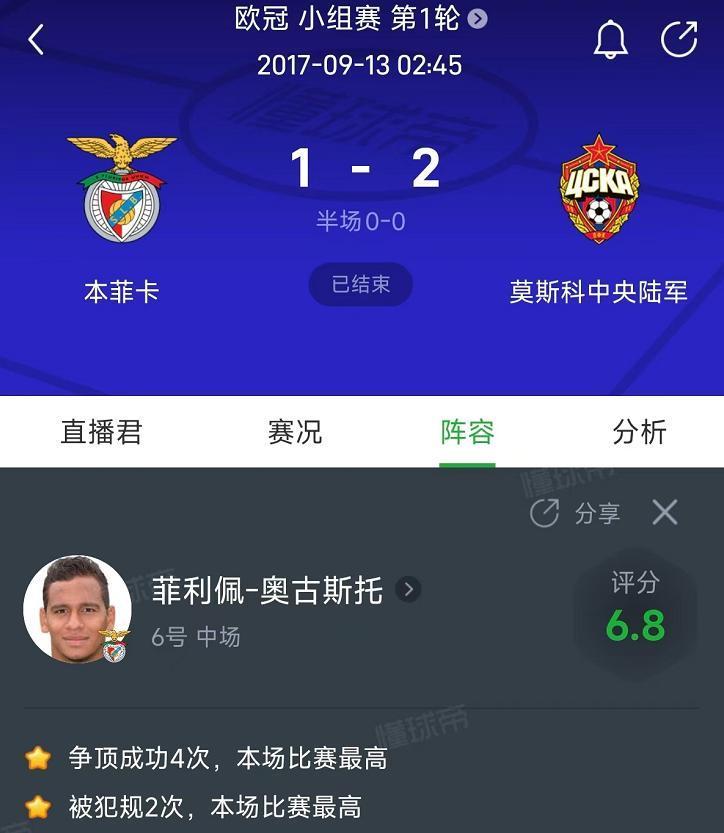 第二个,奥古斯托那时但是在欧冠正赛踢过主力的球员。在葡超朱门本菲卡效率技能,他曾在2017到2018赛季以球队主力后腰出战3场欧冠小组赛,所有王人是首发出场,是那时球队的统统主力,其中还包括对曼联首发踢满全场,对莫斯科中央陆军更是在成功争顶和被犯规2项数据上排在全场第一。