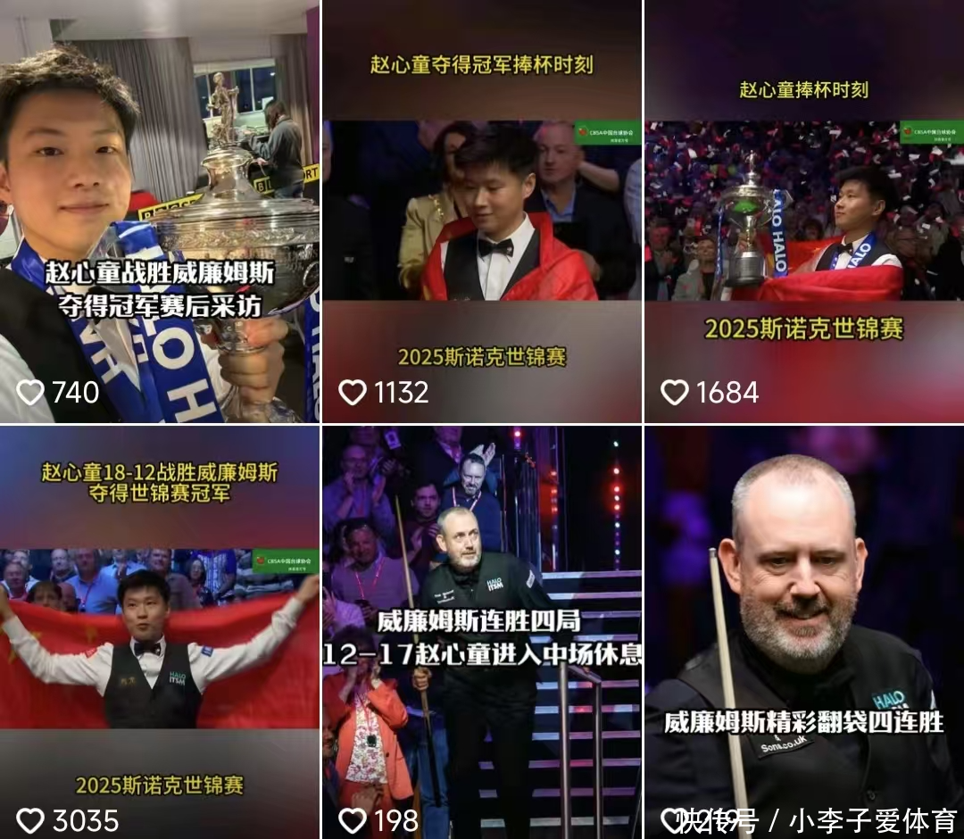 赵心童夺冠,中台协连发视频道贺!球迷嘲讽,迅速拔除国内禁赛令。2025年斯诺克世锦赛决赛,中国选手赵心童以18-12降服三届世锦赛冠军马克·威廉姆斯,成为首位捧起斯诺克世锦赛冠军奖杯的中国东谈主,同期赵心童以业余选手的身份从履历赛解围,并奏效夺冠,用球杆书写了一部据说。